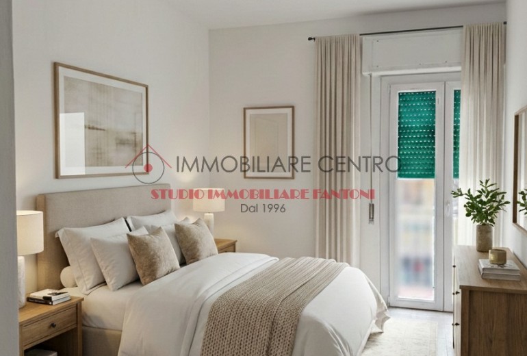 camera matrimoniale con balcone comunicante con il soggiorno, ripostiglio,