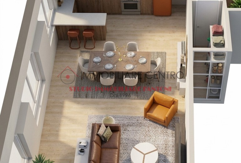 un’ampia zona giorno di 44 mq con angolo cottura, pensata per offrire il